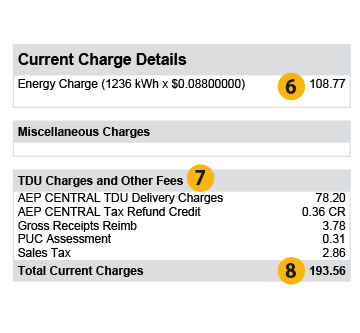 8. This amount is calculated by adding the Energy Charge, TDU Delivery Charges, and Other Fees together.